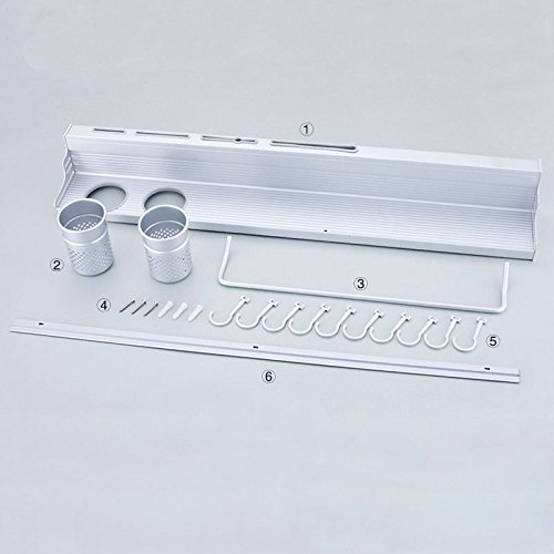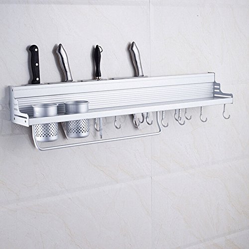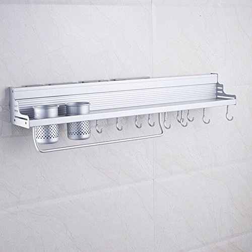 長いアルミニウムのキッチン収納ラック食パンパンポットオーガナイザー調理器具ホルダーフックスパイス食器用壁棚50cm