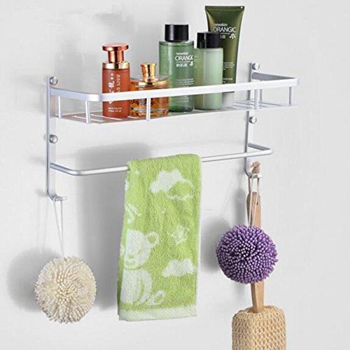 キッチン用棚ダブルフック付きアルミタオルホルダーバスルームスペースオーガナイザータオル棚収納棚