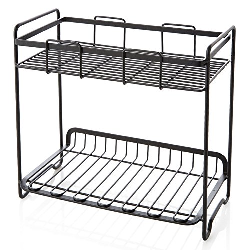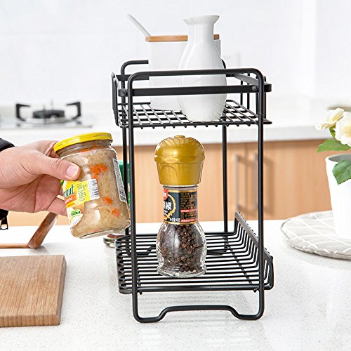 1pcシンプルな2層マルチ機能シェルフ調味料ナイフチョッピングボードシェルフキッチン収納ラック(フックアップ付)