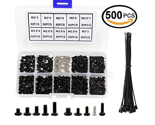 500 pcラップトップノートブックコンピュータ修理スクリューキット、フラットクロスヘッド交換修理スクリューセットfor Lenovo、Dell、Toshiba、Sony、SAMSUNG、HP、Gateway、自動ロック式ケーブルタイforフリー