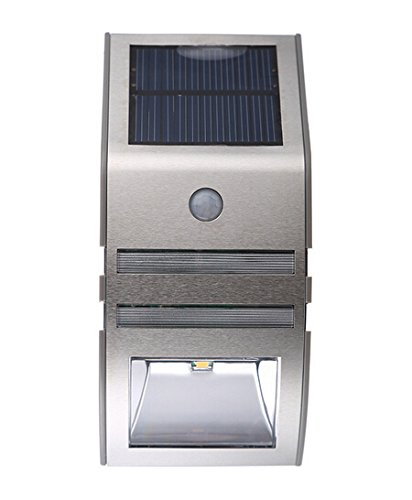 ノーブランド品ソーラー LED センサーライト 屋外 高品質 ステンレス製 防水機能付き LED電球2個内蔵 電池不要 屋外照明/軒先/壁掛け/庭先/玄関周り等で使用 夜間自動点灯 … (スライバー)