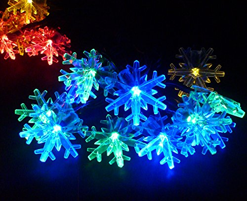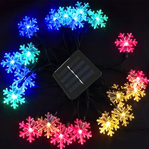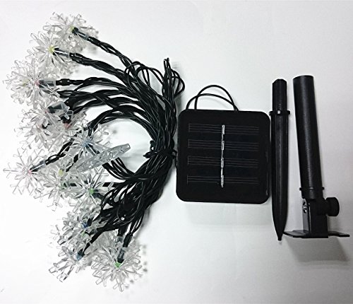 ノーブランド品雪花型ロープライトイルミネーション ソーラー充電式 LEDライト 手動点灯 30球 6M 防滴仕様 2パターン点灯 クリスマスライト パーティー飾り 結婚式飾り