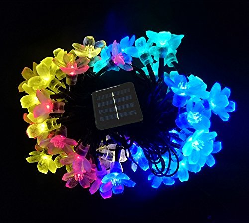 ノーブランドモモの花型ロープライトイルミネーション ソーラー充電式 LEDライト 手動点灯 50球 7M 防滴仕様 2パターン点灯 クリスマスライト パーティー飾り 結婚式飾り
