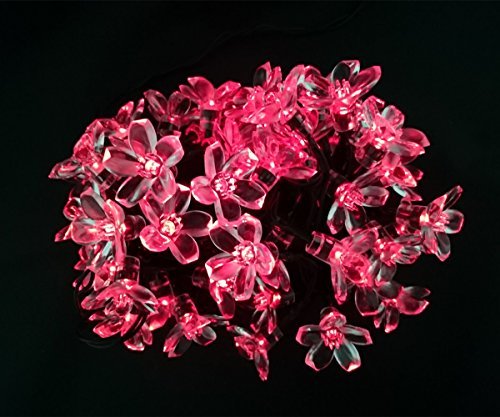 ノーブランドモモの花型ロープライトイルミネーション ソーラー充電式 LEDライト 手動点灯 50球 7M 防滴仕様 2パターン点灯 クリスマスライト パーティー飾り 結婚式飾り