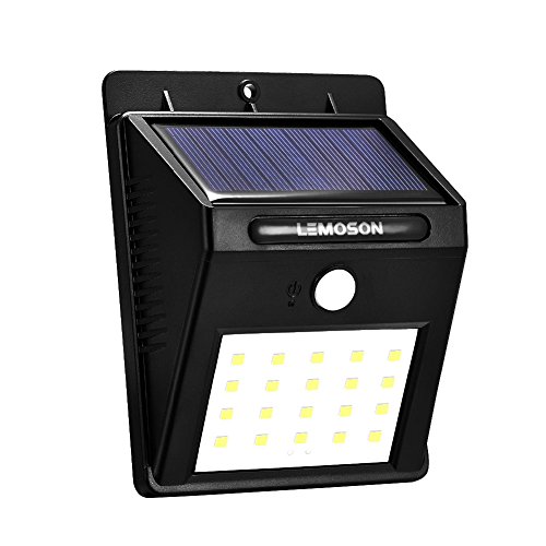 センサーライト ソーラーライトLemoson 20LED屋外照明高輝度 ワイヤレス 人感センサー搭載 アウトドアライト 弱光 強光モード切替 屋外/軒先/駐車場/庭先/玄関周りなど適用 太陽光充電 夜間自動点灯 壁掛け 防犯ライト 防水 防雨 (黑, 1)