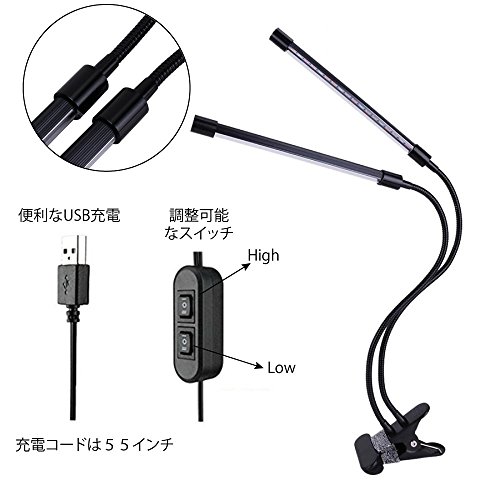 植物育成LEDライト 植物ライト 家庭菜園 水耕栽培 水草栽培 植物育成用適用 室内 日光 光 ランプ 園芸 LED クリップ式 USB 360°角度及び高さ調整可能 低消耗電力
