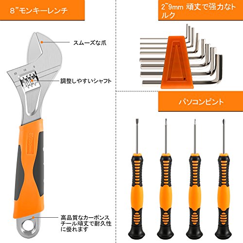 - 「1年の品質保証が付きます」 収納・携帯便利:ABSとPC素材で作られたツールボックスが頑丈で持ち歩く便利です。取っ手が握りやすく、労力を節約できます。家の固定な場所に置いて、すぐに使いたいツールを持ち出せます。