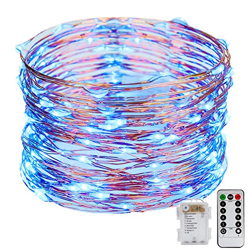 ZOTO イルミネーションライト 電池 リモコン 12M 120球 電池式飾りライト 防水 エコ 室内室外可用 コンセント不要 ブルー