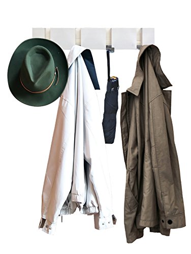 - Headbourne 8049E 16 Modern White Wood Hook Rail / Coat Rack with 4 Chrome Flip Hooks