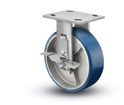 Shepherd Prism Series 4 Diameter Urethane on Iron Wheel Rigid Caster with Tread Brake, 4-1/2 Length x 4 Width Plate, 700 lbs Capacity, Trivalent Zinc Finish by Shepherd
