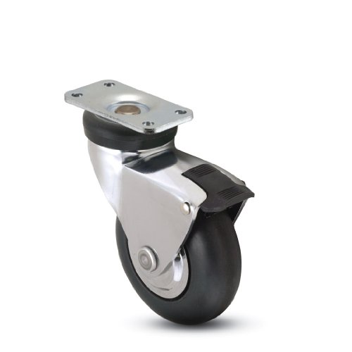 Shepherd Omega Series 3 Diameter Neoprene Wheel Caster with Brake, 2-3/8 Length x 1-1/4 Width Plate, 110 lbs Capacity, Bright Chrome Finish by Shepherd