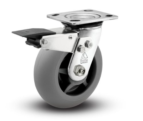 Shepherd Prism Series 6 Diameter TPR Donut Wheel Total Lock Brake Caster, 4-1/2 Length x 4 Width Plate, 600 lbs Capacity, Stainless Steel Finish by Shepherd