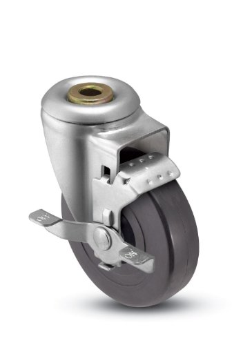 Shepherd Institutional Series 3-1/2 Diameter Hard Rubber Wheel Hollow Kingpin Swivel Caster with Tread Brake, 250 lbs Capacity by Shepherd