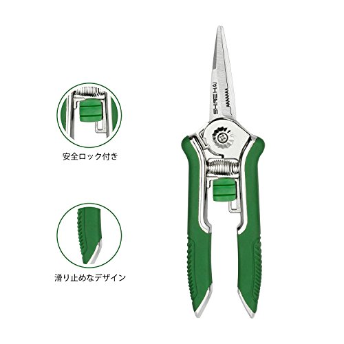 SH 剪定鋏 本職園芸専用 生け花 はさみ SK-5スチール刃 軽量 果樹 庭木の剪定 盆栽剪定道具 植木のお手入れ 剪定ハサミ 安全ロック付き 園芸用はさみ 一年保証 (黒)