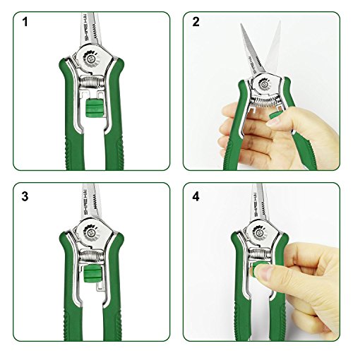 - 【安全性】使用しない時は安全ストッパーで簡単に収納し、かすり傷をつけないように保護しています。子供が怪我することも心配なくなり、子供と一緒に園芸を楽しんでください。