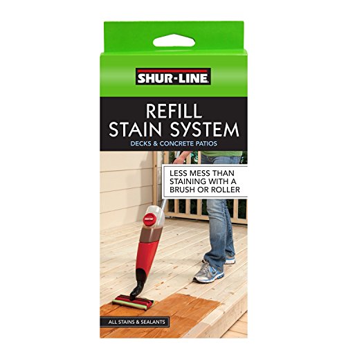 Cleans easily with water and works with all stains and sealants. Shur-Line has a long history of offering innovative solutions for the do-it-yourself consumer. SHUR-LINE's reusable Stain System makes deck staining easy and creates less mess than staining with a brush or roller. The fully assembled system features a spray trigger, allowing the user to control the flow of stain for superior coverage and a smooth finish. The system cleans up easily with water, simply fill the reservoir with water and flush through the system until it runs clean.