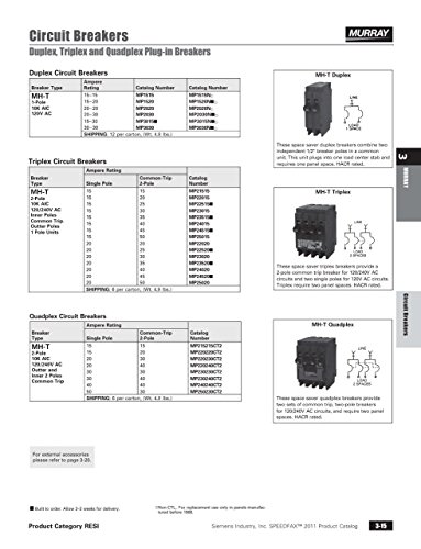 Murray breakers are intended for use in Murray and Crouse Hinds type load centers. These breakers are plug in style and are on a 1/2-Inch per pole format. See the wiring diagram on the load center for breaker type acceptance. The 1/2-Inch breakers will only fit in designed spaces within certain load centers. The wiring diagram will state if the MH-T breakers are accepted and will detail where they can be installed. Murray strongly recommends against the use of "used" breakers. The installation of used breakers in a Murray panel will void the warranty on the panel. Murray does not sell used breakers and has not approved any 3rd party sellers to do so.