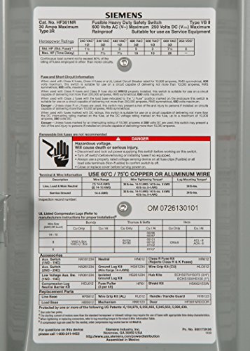 Siemens HF361NR 30-Amp 3 Pole 600-volt 4 Wire Fused Heavy Duty Safety Switches [並行輸入品]