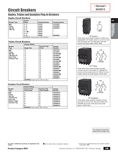 Siemens duplex type QT breakers are a 1/2-Inch frame per pole and are suitable for use in Siemens panels that allow CTL type QT breakers. This breaker has a 30 and 15 Amp single pole breakers in one 1-Inch housing. Siemens strongly recommends against the use of "used" breakers. The installation of used breakers in a Siemens panel will void the warranty on the panel. Siemens does not sell used breakers and has not approved any 3rd party sellers to do so.