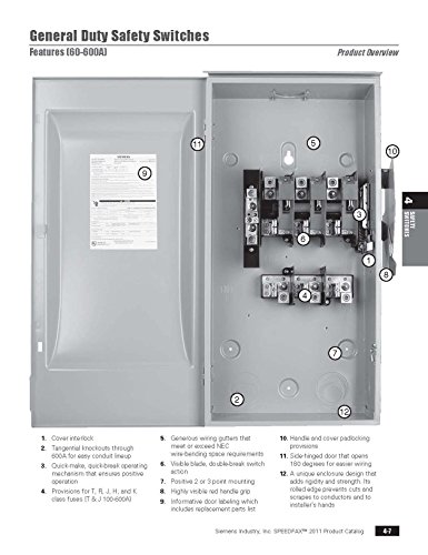 Fusible. Murray general duty safety switches have a compact size, are horsepower rated, and have a quick make-quick break mechanism. All switches are provided with highly visible "ON" and "OFF" indicators and padlocking provisions on the handle and door. All switches are UL listed and are suitable for copper and aluminum wire. Fuses not included on fusible devices and accept Edison base plug fuses. Use HA type hubs if required.