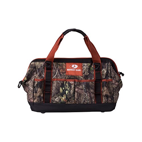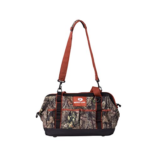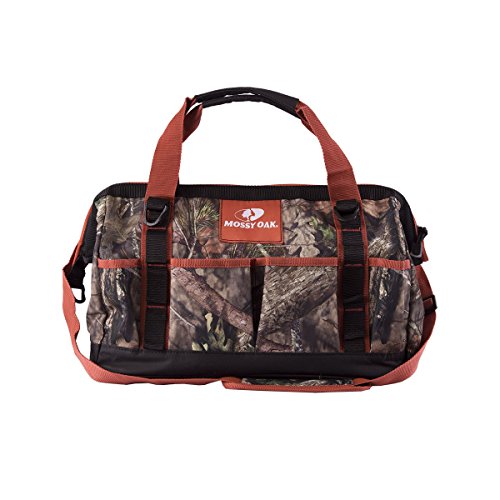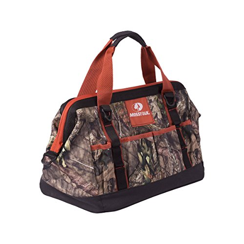 The camouflage zipper tool tote is rugged and ready for any job with a durable reinforced base and multiple easy-access tool pockets. This tool bag features camo print, high-visibility accents, durable carry handles, and a removable shoulder strap. Ithas a large, zip-close top and is tough enough for transporting heavy items for work, hunting, travel, or camping.