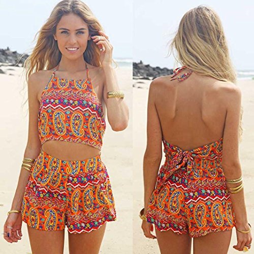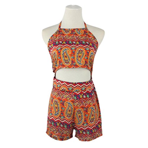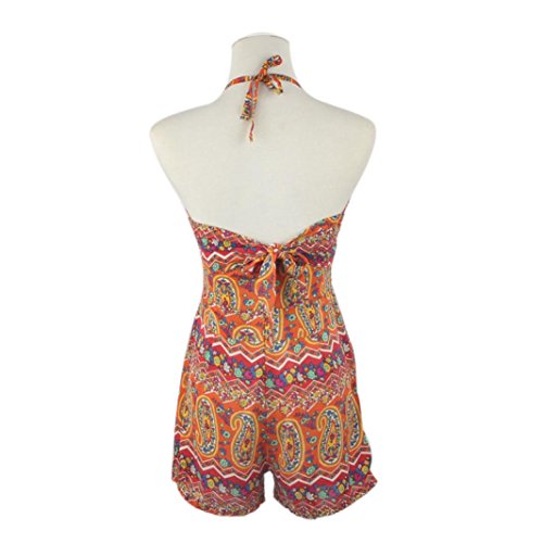 Sikye夏ビーチウェア、レディース印刷バックレスシフォンボディコンジャンプスーツショーツ L mg-013