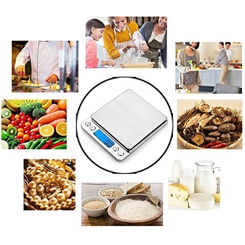 デジタルスケール 電子天秤 0.01gから500gまで精密な計量器 風袋引き機能付き 料理用電子はかり シルバー(日本語版取扱説明書付き)