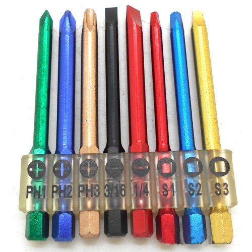 新しい8pc 3 " Color codedドライバービットセットフラット, Phillips &スクエア1 / 4インチ六角シャンク