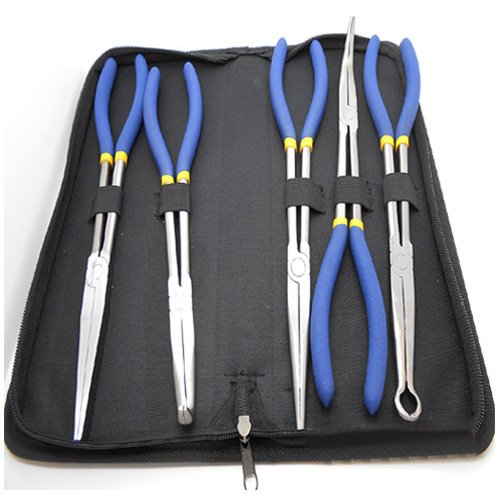 Simplyシルバー – 5pc 11 "長い鼻ペンチセットハンドツール針鼻ペンチW /ポーチ自動HD