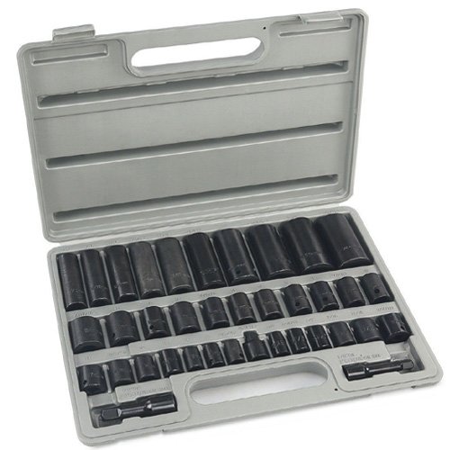 Simplyシルバー – 38pc 3 / 8 " & 1 / 2 " Duoコンボインパクトソケットセットディープ& Shallowメトリック/ SAE Flank