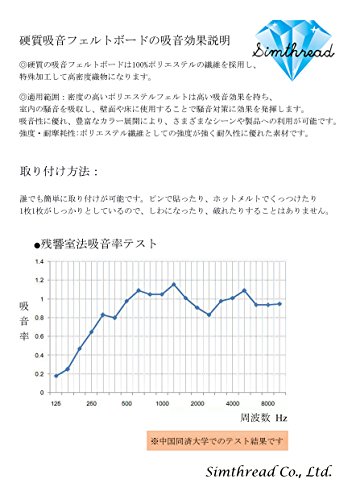 ○ 硬質吸音フェルトボードの吸音効果 ◎硬質の吸音フェルトボードは100%ポリエステルの繊維を採用し、特殊加工して高密度織物になります。 ◎適用範囲:密度の高いポリエステルフェルトは高い吸音効果を持ち、室内の騒音を吸収し、壁面や床に使用することで騒音対策に効果を発揮します。吸音性に優れ、豊富なカラー展開により、さまざまなシーンや製品への利用が可能です。強度・耐摩耗性:ポリエステル繊維としての強度が強く耐久性に優れた素材です。 △取り付け方法: 誰でも簡単に取り付けが可能です。ピンで貼ったり、ホットメルトでくっつけたり 、 1枚がしっかりとしているので、しわになったり、破れたりすることはありません。