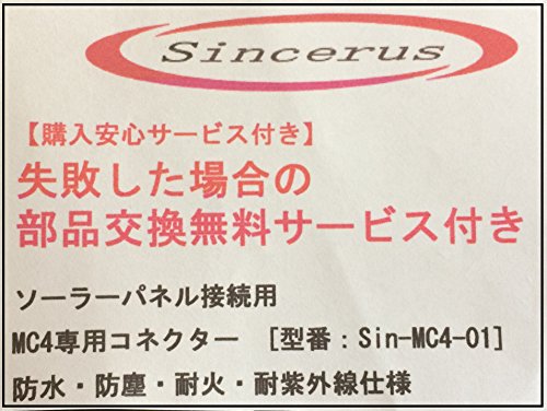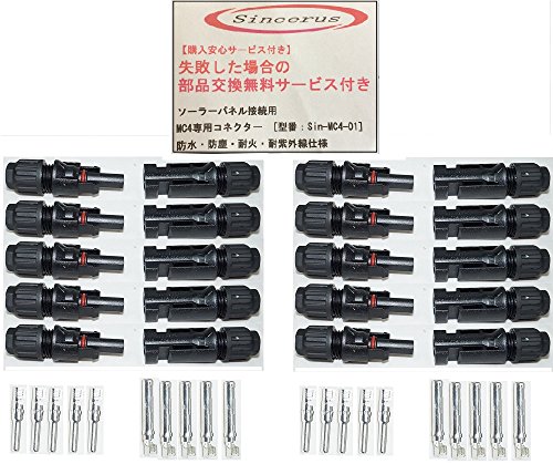 ソーラパネル 接続用 MC4 専用 コネクタ オス メス セット 国際規格 TUV 認定品 高耐候 耐熱 防水 防塵 購入 安心 失敗 部品 無料 交換 サービス付 1組 - 500組 Sinceru (10組)