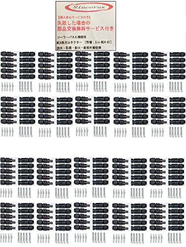 ソーラパネル 接続用 MC4 専用 コネクタ オス メス セット 国際規格 TUV 認定品 高耐候 耐熱 防水 防塵 Wチェック検品+PL保険加入済み 購入 安心 失敗 部品 無料 交換 サービス付 1組 - 1,000組 Sinceru (100組)