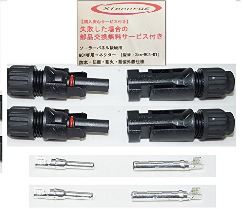 ソーラパネル 接続用 MC4 専用 コネクタ オス メス セット 国際規格 TUV 認定品 高耐候 耐熱 防水 防塵 Wチェック検品+PL保険加入済み 購入 安心 失敗 部品 無料 交換 サービス付 1組 - 1,000組 Sinceru (2組)