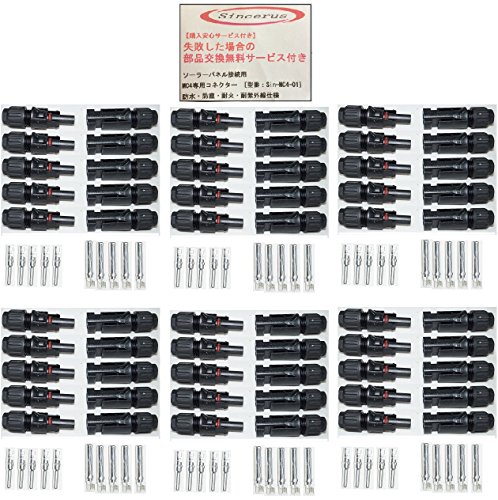 ソーラパネル 接続用 MC4 専用 コネクタ オス メス セット 国際規格 TUV 認定品 高耐候 耐熱 防水 防塵 購入 安心 失敗 部品 無料 交換 サービス付 1組 - 500組 Sinceru (30組)