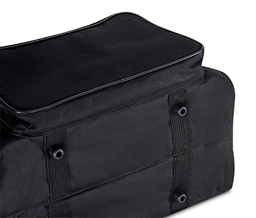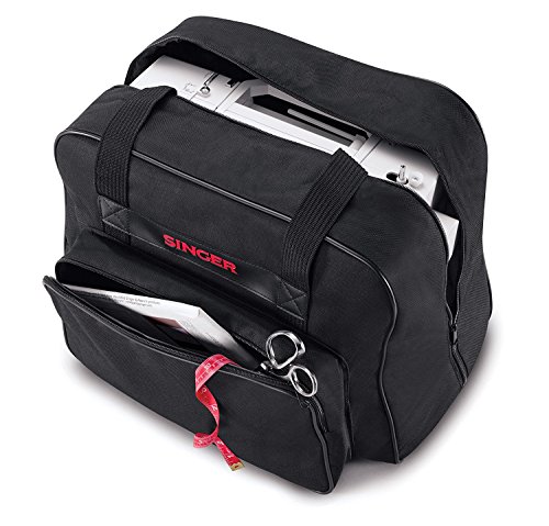 Color:Black Protect your sewing machine on the go and at home with the SINGER universal black tote bag. This bag is the perfect size for your SINGER sewing machine or serger. Safely take your sewing machine with you using the durable straps, solid plastic base and padded walls. The exterior zip pocket allows you to easily store all of your accessories. Fits most sergers and sewing machines.