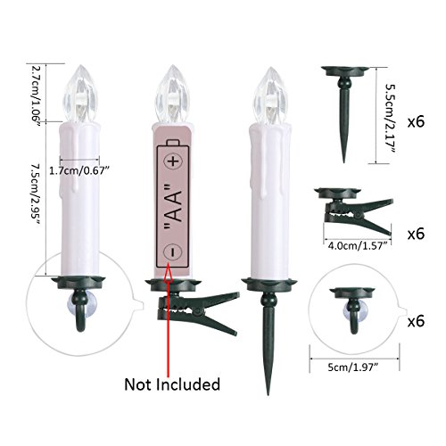 ウィンドウキャンドル| FlamelessテーパキャンドルLEDちらつきキャンドル無香電池式|ホワイトキャンドルElectric Tealightリモートwithタイマークリップギフトパーティーウェディングホリデーツリーデコレーション 7-LZL67-TRECDL-6P806 6