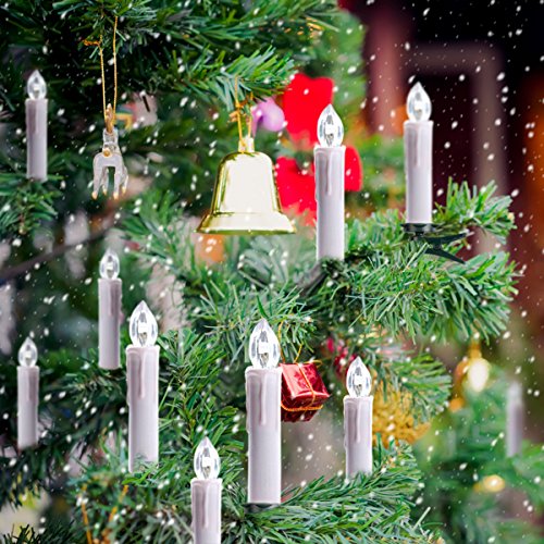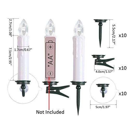 ウィンドウキャンドル | フレームレステーパーキャンドル LED 揺らめく灯明 無香 電池式 | ホワイトキャンドル 電動ティーライト タイマー付きリモコン クリップ付き ギフト パーティー 結婚式 ホリデーツリーデコレーション 6-LZL60-TRECDL-10P907 10