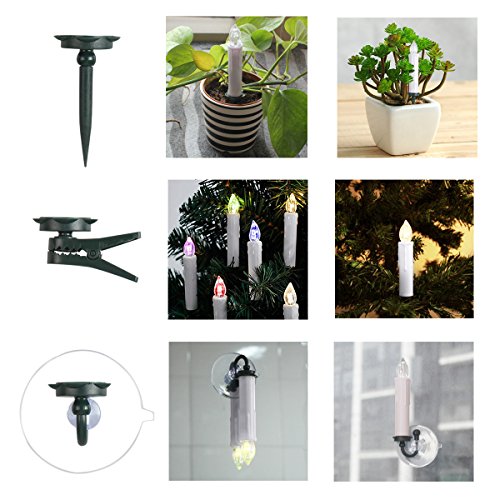 - 【4通りの取り付け方法】電動テーパーキャンドルは釘、クリップ、スポンジホルダー、吸盤と4通りの取り付け方法があります。テーブルの上に立てたり、クリスマスツリーに留めたり、芝生に差し込んだり、窓や平らな壁に吸盤で取り付けることができます。