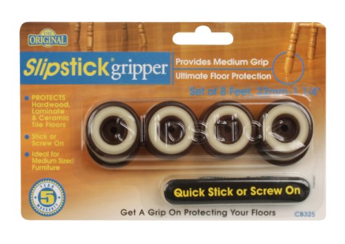 Slipstick CB325 Non Slip Furniture Feet Floor Protectors with Rubber Grip (Set of 8 Grippers) 1-1/4 Inch Round - Chocolate Brown by Slipstick