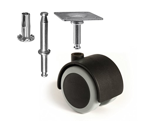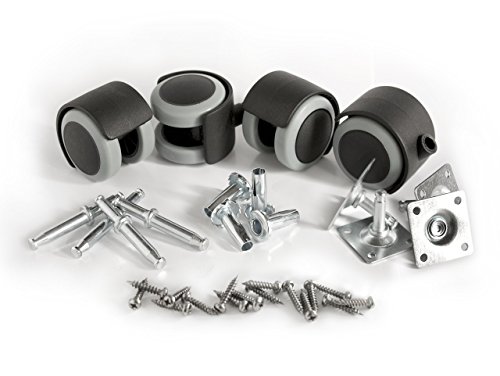 Get smooth, quiet rolling and full swivel action all while protecting your floors with these low profile rubber casters. Wheel tread is made of specially formulated polyurethane rubber to protect hardwood, LVT, laminate, tile, slate, and all other hard floor surfaces. Unlike other caster wheels, this 4-piece rubber caster wheel set contains two universal attachment options. Whether you need to mount these to a chair with a 5/16' stem or to a cabinet using a flat top plate, this handy pack includes all the required mounting hardware. Ideal replacement set or in new construction of chairs, tables, racks, storage containers, carts, and more. A set of 4 has a moving load capacity of 264 lbs. and a static load rating of 308 lbs. Perfect for home, office or industrial use, our wheels carry a 5-year limited warranty. (1-year commercial).