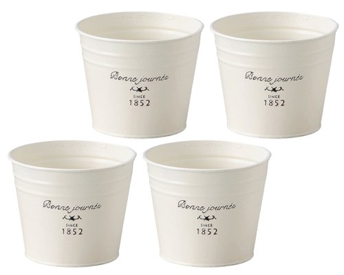 ナチュラルブリキポット ラウンドM ホワイト 130Φ×105Hmm 3140-C 4個セット