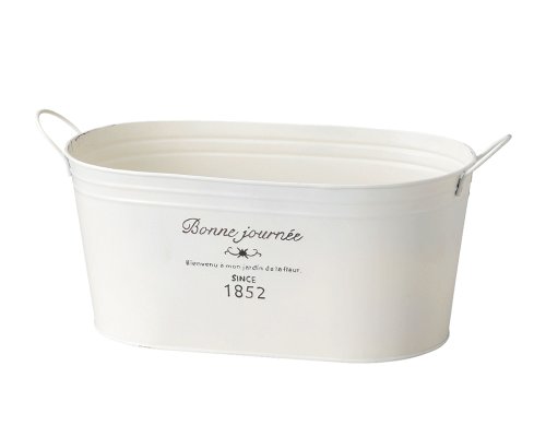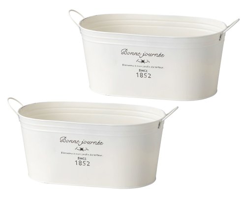 ナチュラルブリキポット オーバルL ホワイト 340×185×155Hmm 3141-A 2個セット