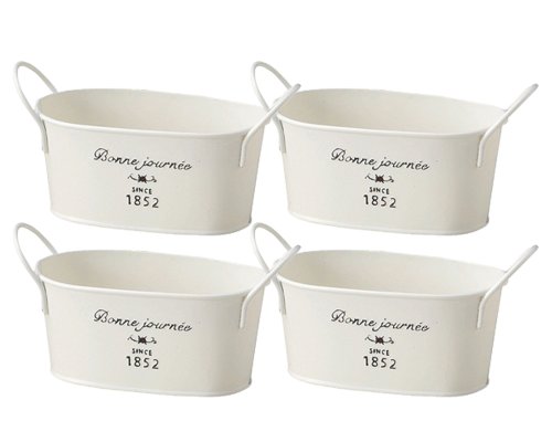 ナチュラルブリキポット オーバルSS ホワイト 145×85×65Hmm 3141-D 4個セット