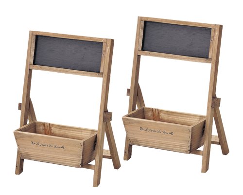 - ガーデニング 園芸 ガーデンボックス 黒板付木製スタンド式プランター 2個セット