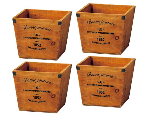 ナチュラルウッドプランター スクエアM ブラウン 190×190×170Hmm 3076-B-BR 4個セット