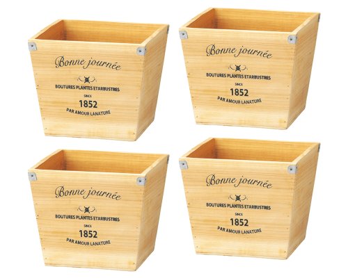 ナチュラルウッドプランター スクエアM ナチュラル 190×190×170Hmm 3076-B-N 4個セット
