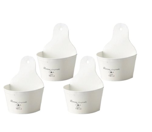 ナチュラルブリキポット 壁掛L ホワイト 135×110×90(195)Hmm 3144-A 4個セット