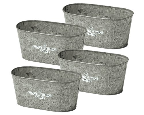 シルバーカラーブリキポット オーバル3.5号用 プランター 240×125×105Hmm 2767-B 4個セット