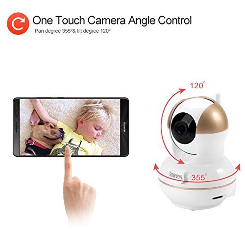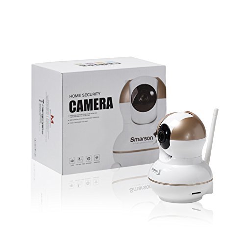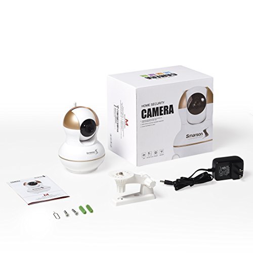 The Smarson HD WIFI Home Security Camera is an essential gadget for any home owner! The 720 HD IP camera's high performance hisilicon chip set enables you to get crystal clear image quality during the day and night. Capture recordings 10 seconds before alerts automatically when moving objects are detected. Dynamic alarm detection alerts are shared via email, and supports up to 5 online viewers simultaneously. Built-In WIFI and App allows your smart phone to double as a viewing monitor and remote control. Easily adjust zoom and angle, with ability to pan 355 degrees and tilt 120 degrees. Compatible with both iOS and Android devices. Not only can this camera be used for home security, but it's also a perfect solution for a baby monitor, elderly care, and pet surveillance. No wiring required, setup security camera in just minutes. Power adapter, bracket, screws, and user manual included. Smarson develops solutions for people who value incorporating both innovation and functionality into their everyday lives. Smarson, a smart person's choice.